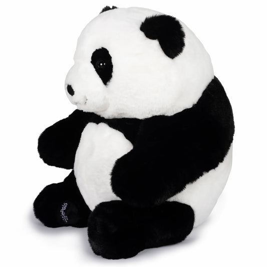 Big ol chubby, lovable panda, super soft and likely a little bit too big for a microwave, but we love it.